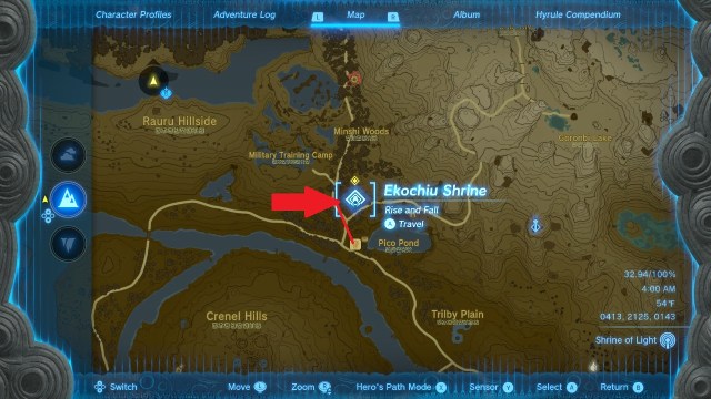 The easiest way to reach the Woodland Stable is via the Lookout Landing tower, which you can use to rocket yourself northeast while gliding. If your stamina wheel is on the low side you might not make it across the Hylia River: that’s perfectly fine, as you can take the bridge to reach the Eldin region, and pick up the Ekochiu Shrine in the process. After a short walk south from the shrine, you’ll see the Woodland Stable!
