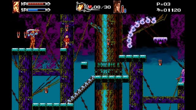 “With a (comparatively) reduced emphasis on exploration, backtracking, and puzzle-solving, the focus for this has become rather akin to how [Curse of the Moon 1 and 2] and CV3 and DoS handled things — pushing the formula of standard platforming to accommodate multiple player characters who all have different strengths and weaknesses,” wrote Dracula9. “Obviously this is not a new concept by any stretch of the imagination, but with its goals being smaller in scope it allows more intense exploration of how to get those key elements just right, and polish them to a shine wherever possible.”