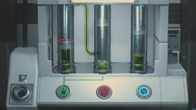 Remember how the scientists from the Resident Evil series seem to not be very good at their jobs? Most players probably don’t as in the original RE2 we just grab a vaccine and administer it to Sherry without much concern. The remake does a great job here by actually forcing players to do some lab work that the scientists have failed at. The cartridge dispersal puzzle revolves solely around the pressing of three different buttons so it’s pretty simple, but it still provides a nice combination of challenging and fun gameplay.*
