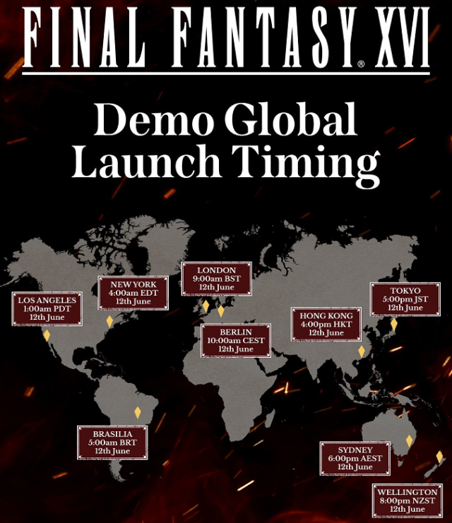The announcement states the demo will release worldwide on June 12th at 4:00 AM EDT. Here’s a nifty map they posted to show what time the demo will be available for you.